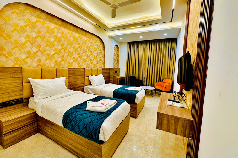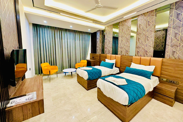 The Deluxe Rooms are elegantly furnished and aesthetically designed rooms that spell comfort and convenience. Offering a plush King bed, loaded with all modern amenities like WIFI, Telephone,HD/LED TV with multiple channels.